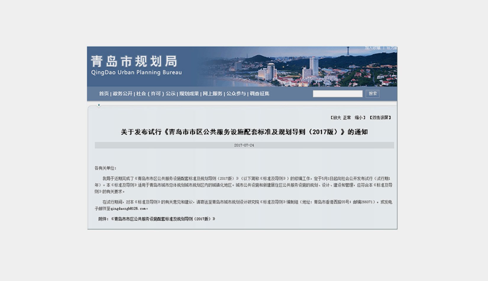 • Revision of Qingdao Urban Public Service Facilities Supporting Standards and Planning Guidelines
