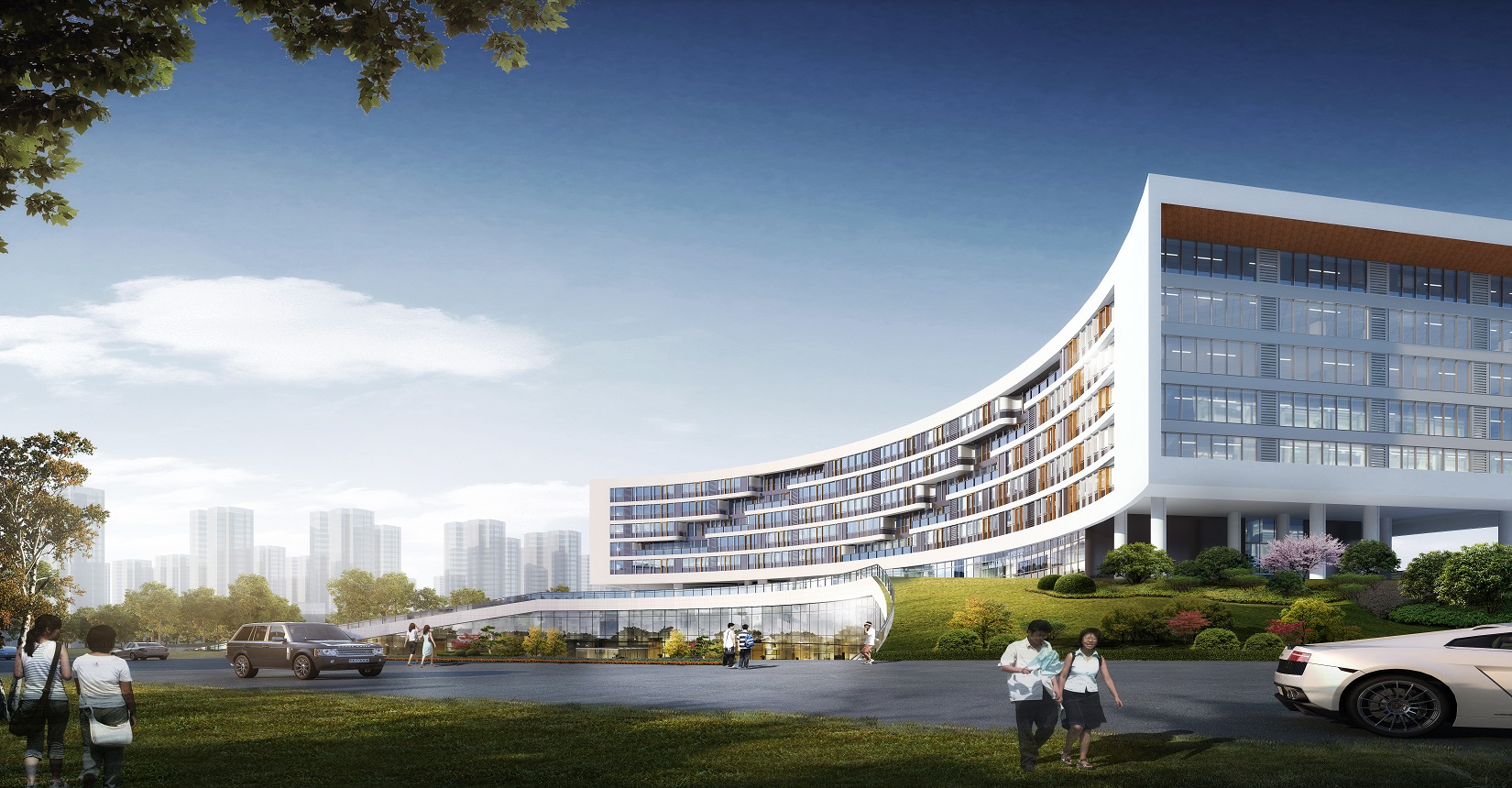 考慮到用地形狀、使用功能和日照等條件因素的影響,總平面布局以“生長”為主題,寓意生命向上生長的力量,生生不息,無限伸展。枝杈無限分支向上生長,象征著無限的力量與生機(jī)。而中醫(yī)的健康講究氣血通暢,循環(huán)往復(fù),從而衍生出“五行”相輔相成的設(shè)計(jì)理念。根據(jù)五行方位確定五行主題。將金水湖與建筑相融合,金水湖為“水”,輔“金”“木”“火”“土”四個(gè)主題廣場。